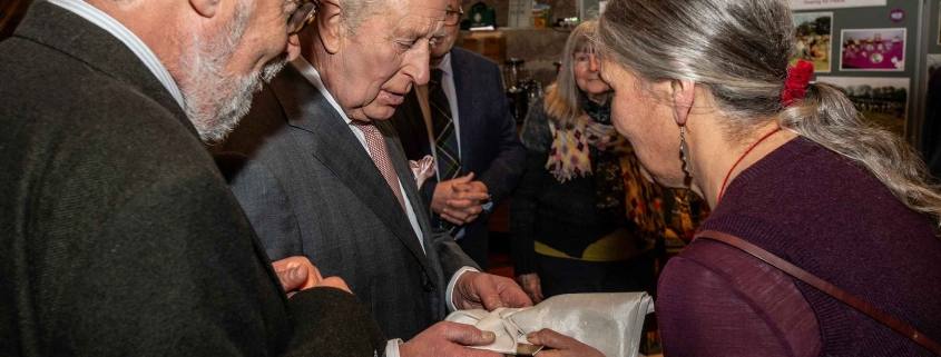 The King, with formidable life-long interest in sustainable architecture, was strongly interested in the Faith Forum’s plans for a green-oak shelter at Dor Kemmyn. Having seen our photo of CFF’s cob bricks, he eagerly enquired how, when, and by whom these had been made – religious, faith, community, school, and other supporter groups at the Dor Kemmyn field. The King expressed his hope and delight if these were to be incorporated into the final project.